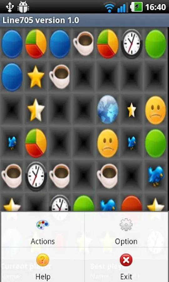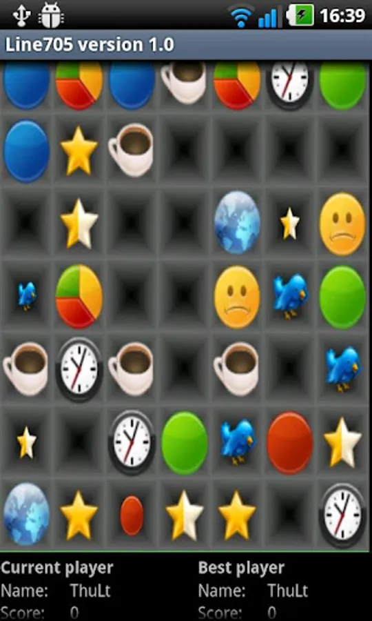 Rule: move icon on the same line. if there are equal to or more than 3 icons the same type continuously, they will be disappear on grid and you will have 5 point for each 3 icons disappeared.