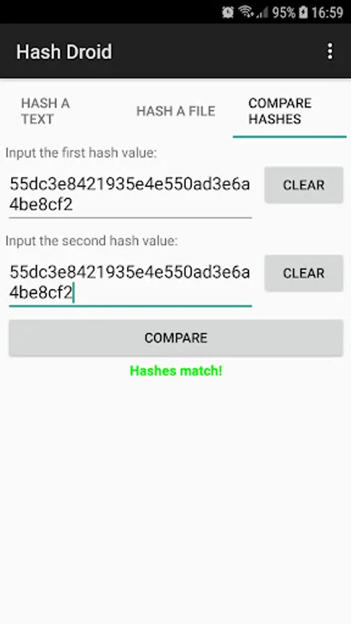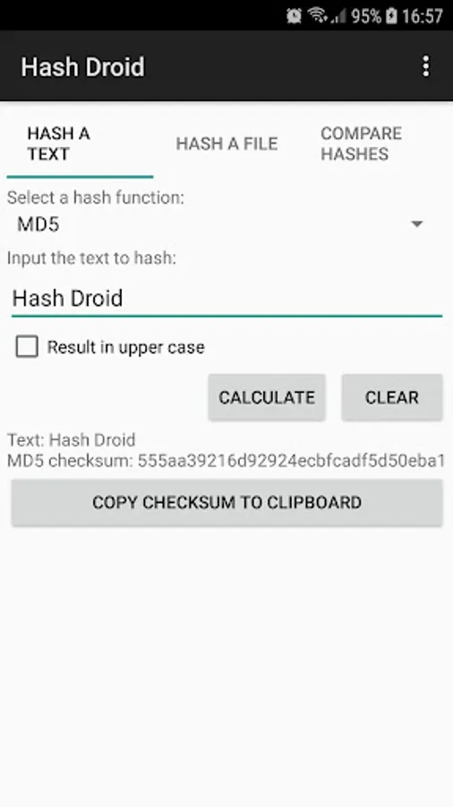 Hash Droid is a free utility to calculate a hash from a given text or from a file stored on the device.