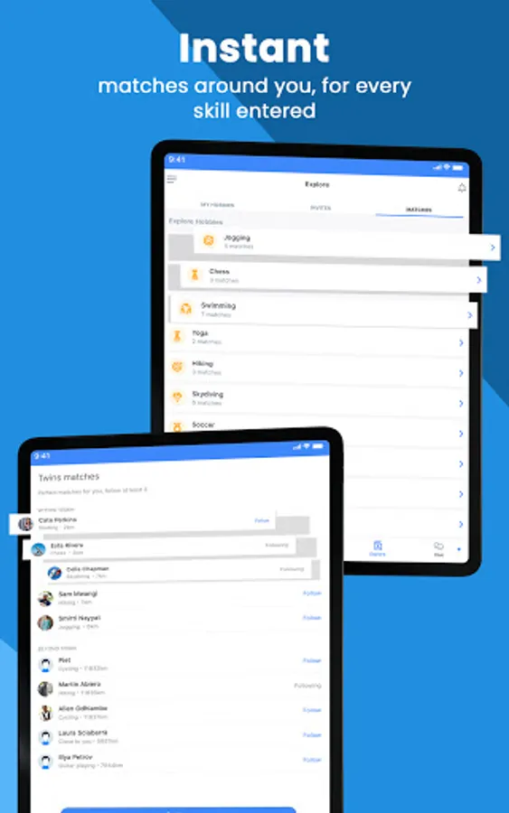 - If you just relocated to a new city but don’t know where to begin, get instant matches around you into the skills you loved in your old city. E.g. Yoga.