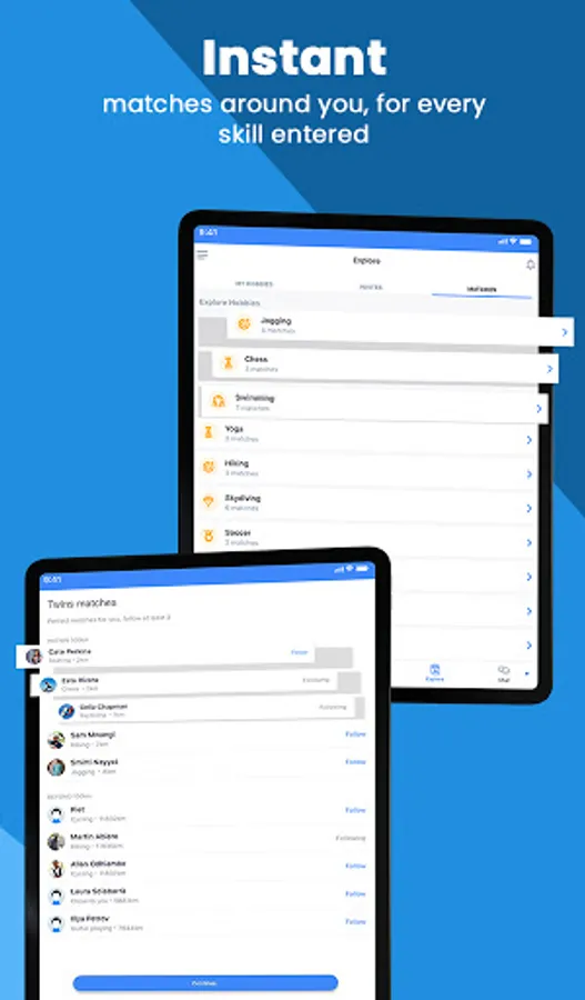 - You get instant, and unlimited matches to mentor you for every skill, and also matches on your skill level to explore with.