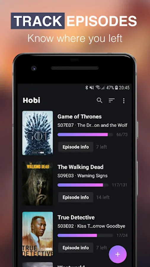Hobi is a simple, lightweight TV tracker with lots of goodies for all series lovers.