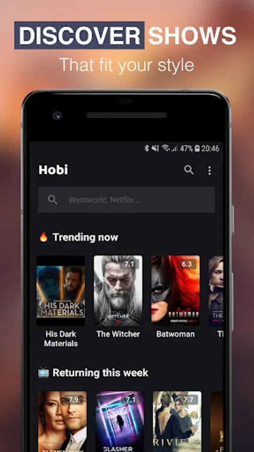 Hobi makes it easy to track TV series you follow - simply tap a show you like and we'll do the rest.