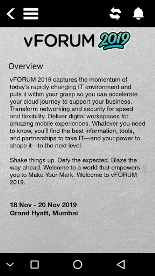 Make the most of your vFORUM experience - be informed and stay connected with the vFORUM 2019 India Mobile App.