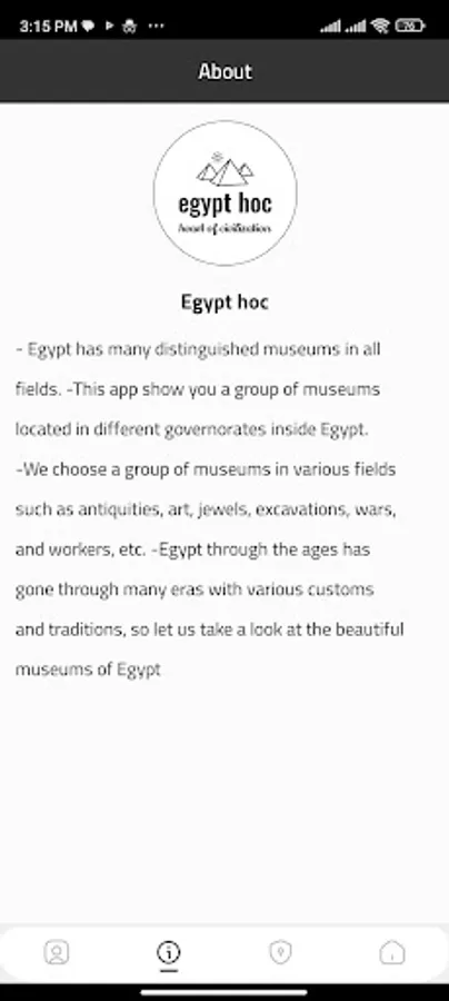هو تطبيق يستطيع الشخص من خلاله معرفة المتاحف الموجودة في مصر