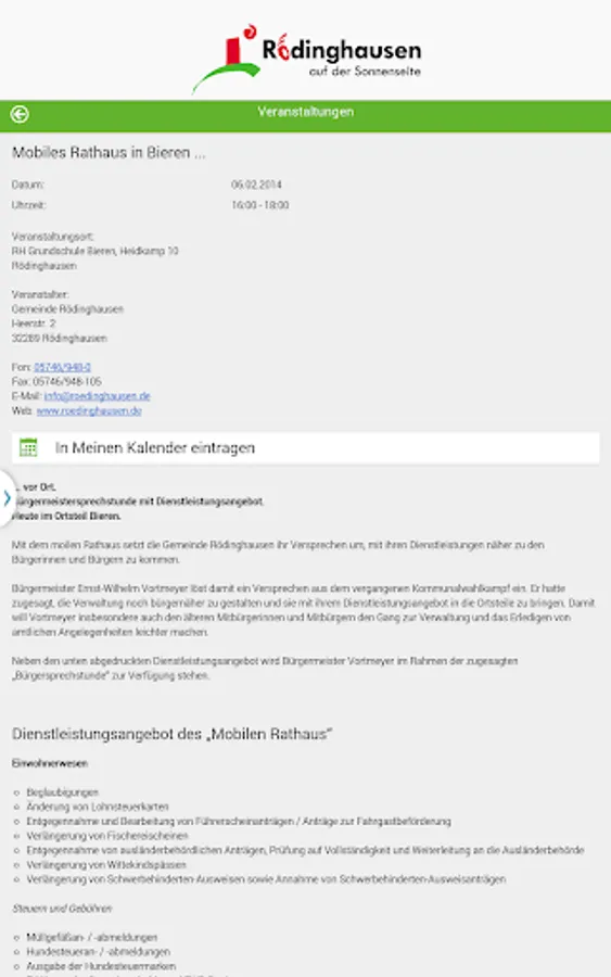 Due to the extensive pool of addresses you can quickly find the correct contact and contact by authorities, associations, etc. Also, be always up to date on events, schedules, news - about life in the community. But not only in organizing your everyday life the Roedinghausen App is a win. To show, for example, the levels of the different Nordic walking routes or provides you using the built QR code scanner additional information on important positions in the community.