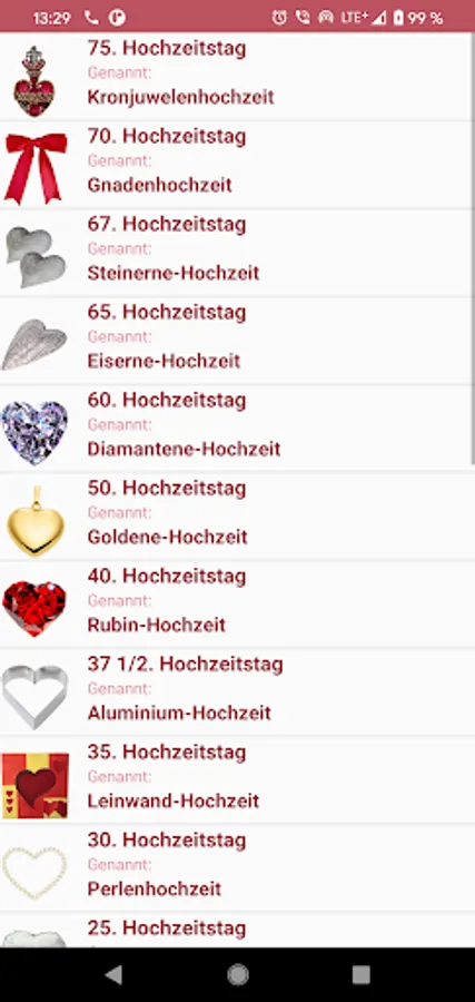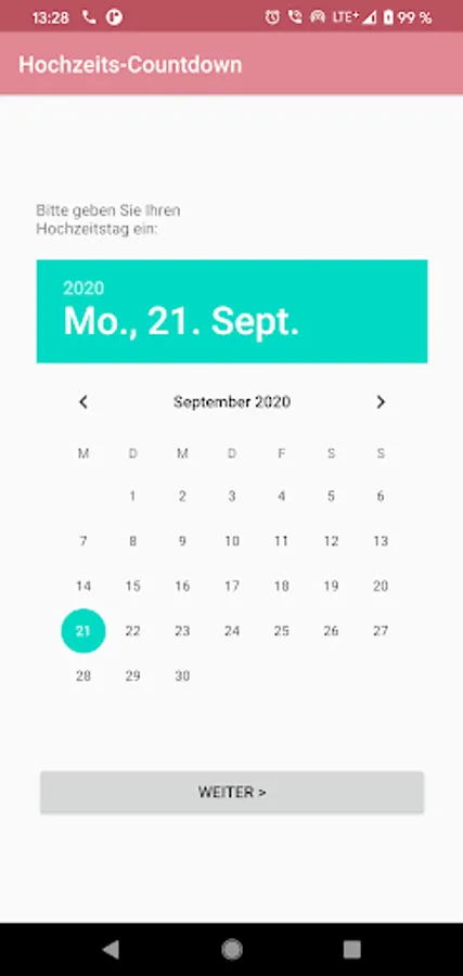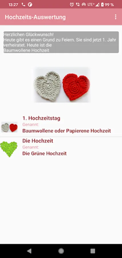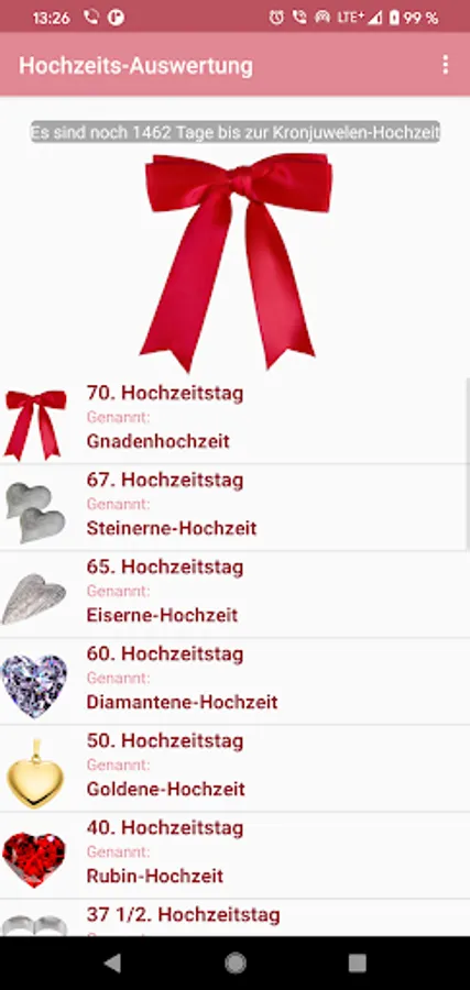 Additional eingegbenen are based on the wedding date, all other wedding types displayed in countdown form and in a list.