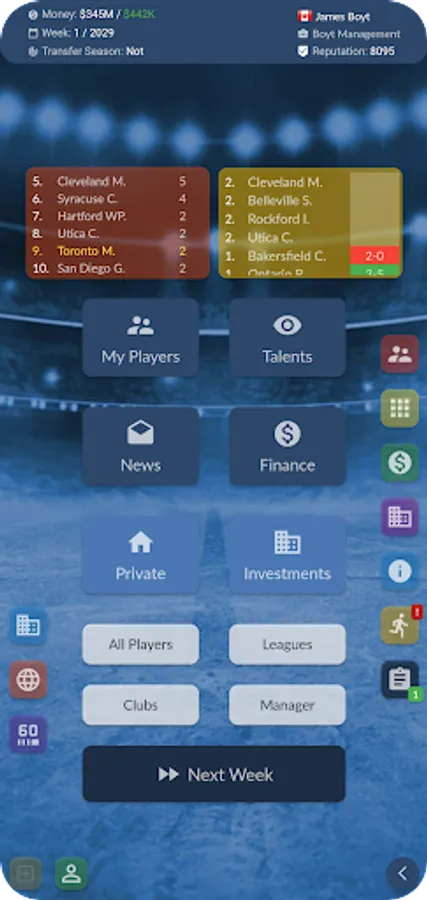 You can become Chairman by buying the club's shares with the money you earn. Hockey Agent Simulation game.