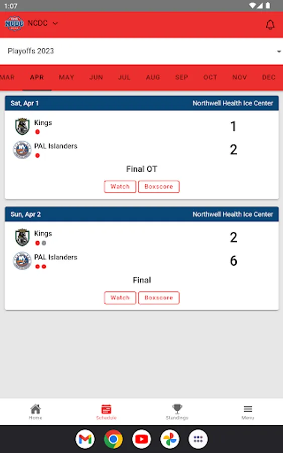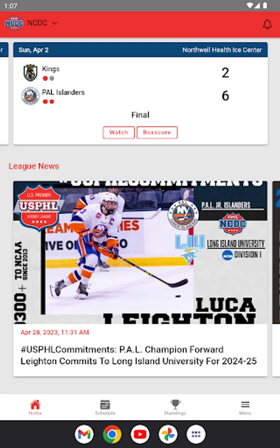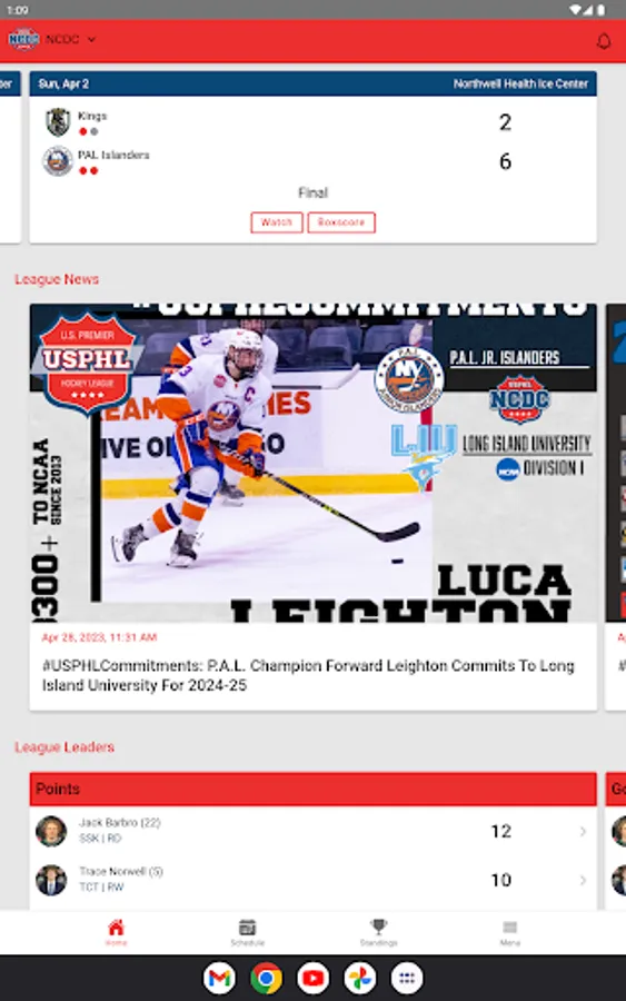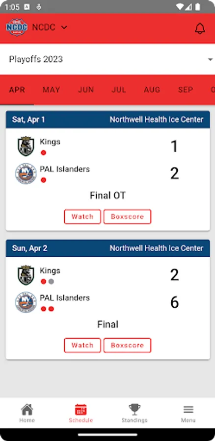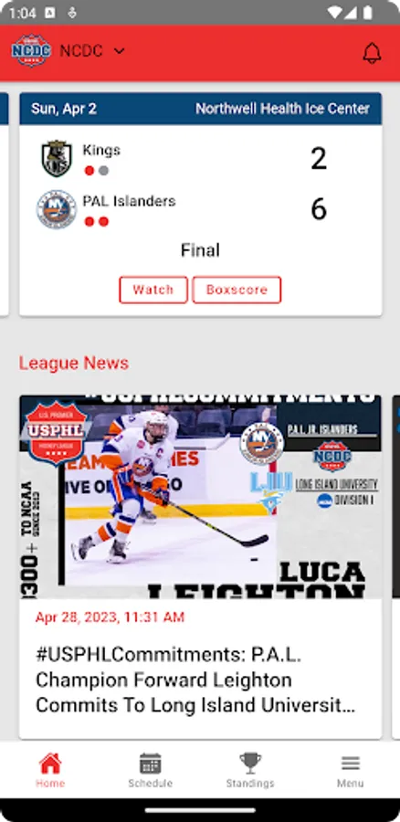 The official mobile app of the National Collegiate Development Conference, featuring real-time scoring data direct from each arena. Follow every game in real time with complete box scores, game summary and up to the minute player stats. The NCDC app also features past Scores, future Schedules, Standings and both player and goalie stats.
