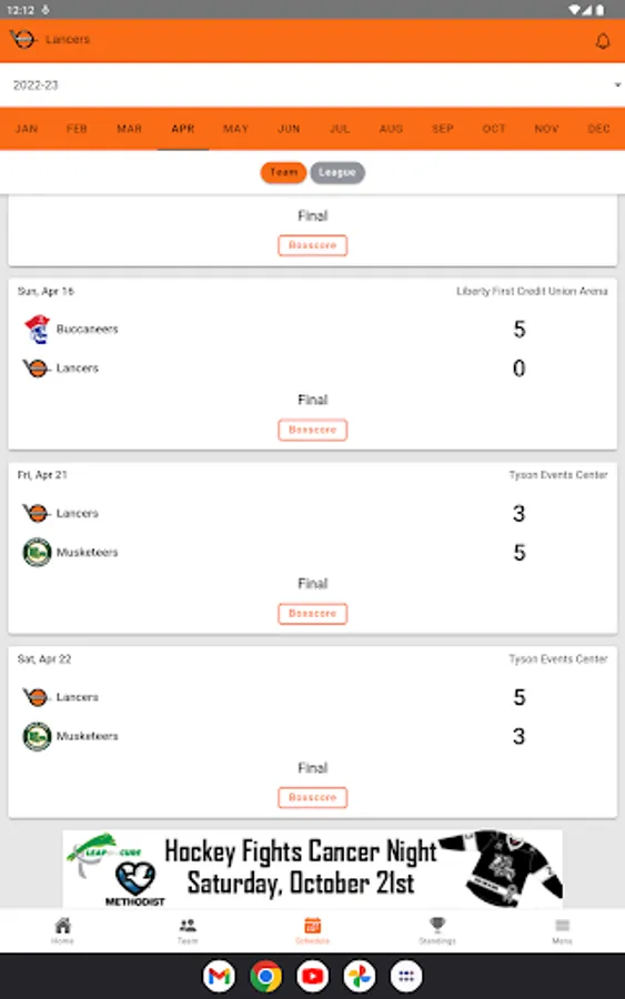 The official mobile app of the Omaha Lancers, featuring real-time scoring data direct from each arena. Follow every game in real time with complete box scores, game summary and up to the minute player stats. The Omaha Lancers app also features past Scores, future Schedules, Standings and both player and goalie stats.