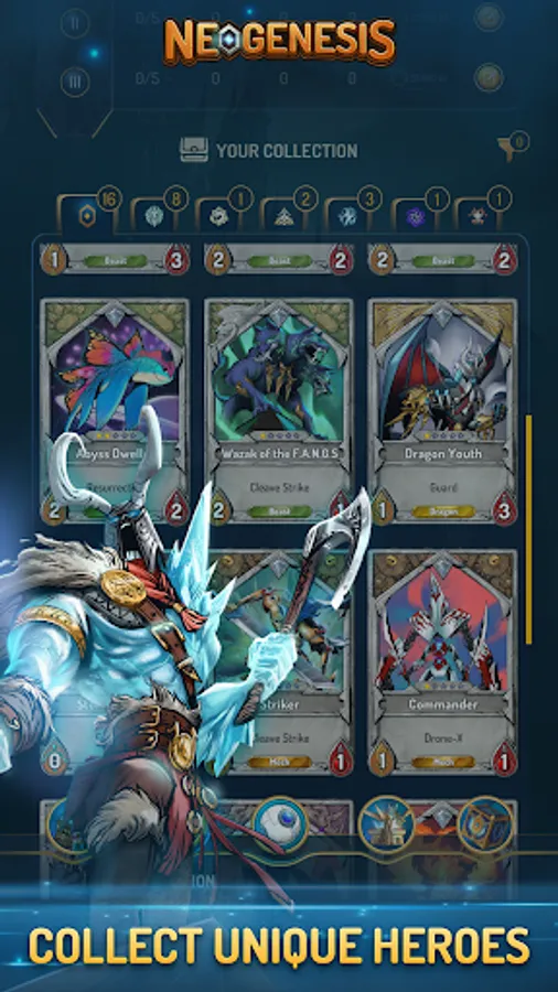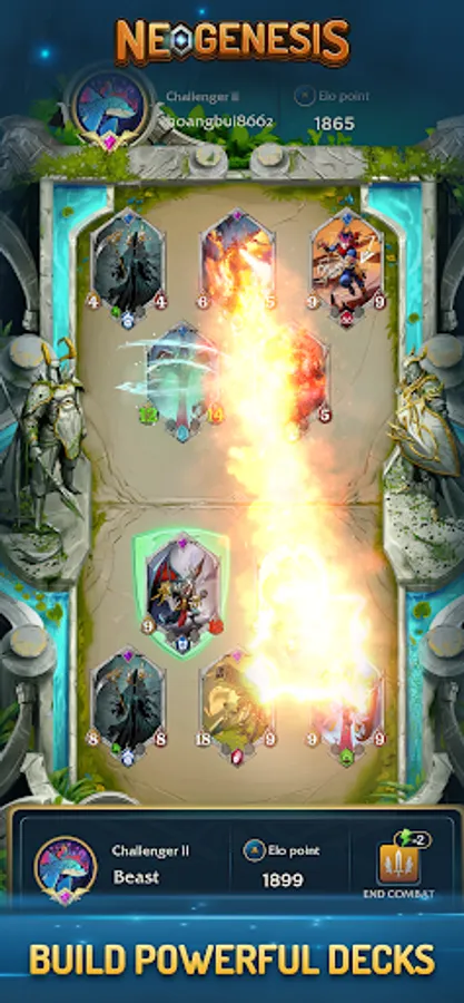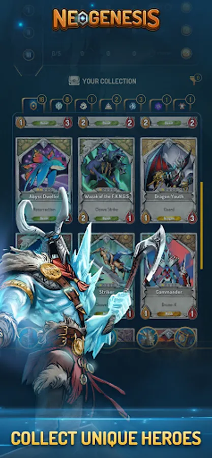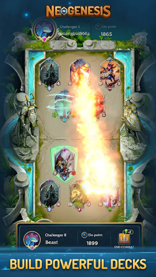 2. Auto-combat: Modern Trading card game is not turn-based, but offers auto-combat hand-free during the combat phase. Each game session is also shorter than that in a traditional trading card game. Neogenesis also uses asynchronous game mechanisms to instantly match the players of the same skill level in PvP mode. There is no interruption during combat even when your network is lost.