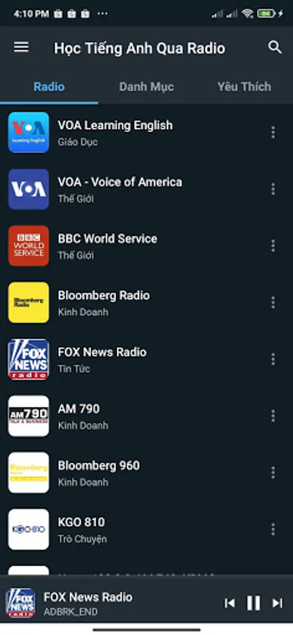 RADIO LIST OF ENGLISH LEARNING APP VIA RADIO: