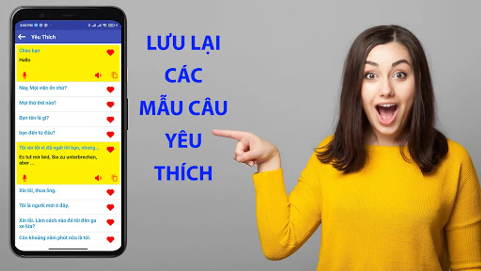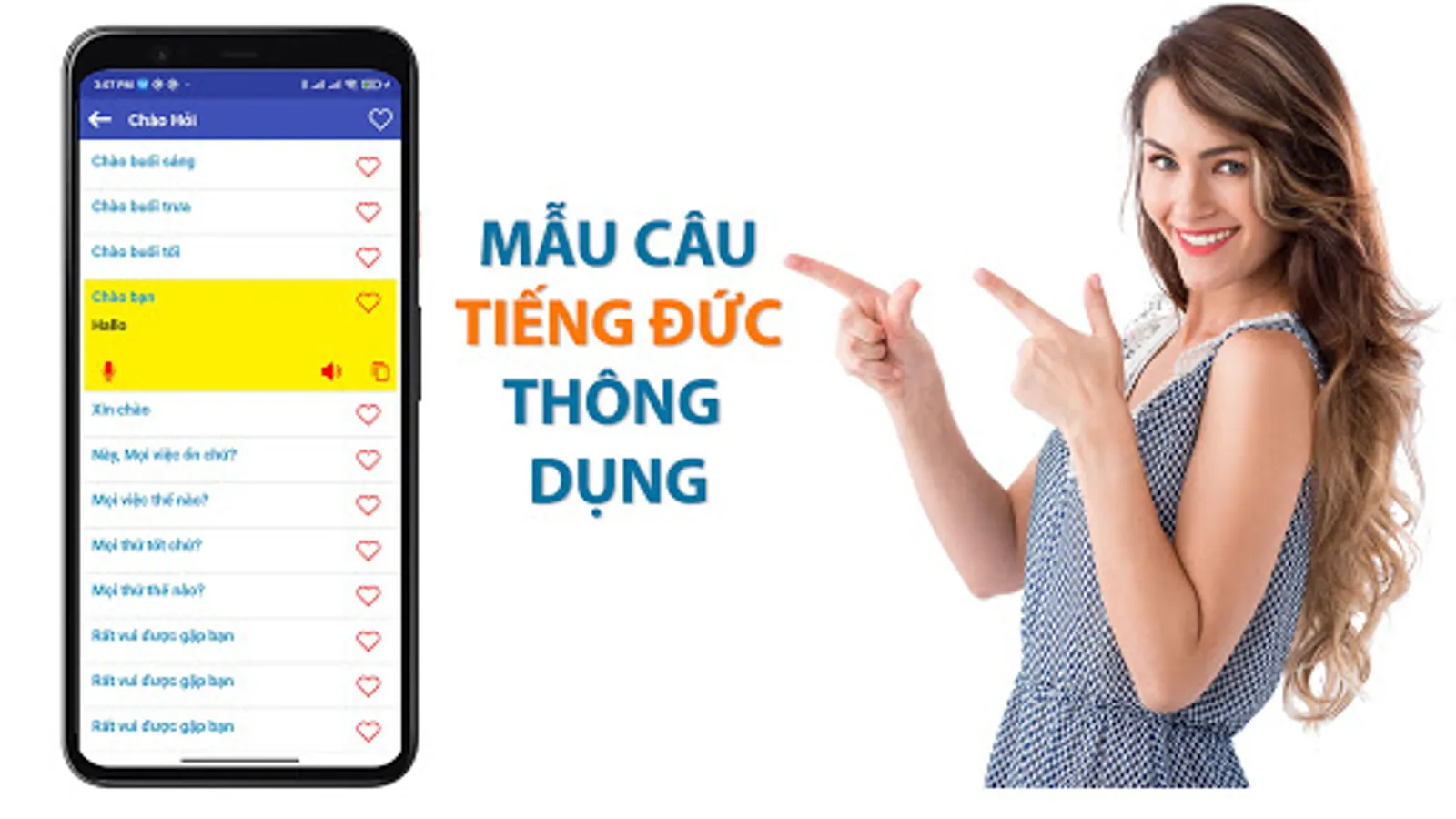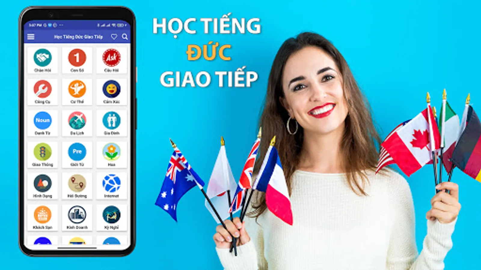 Learn German Communication is an extremely intuitive, lively and effective German learning application on smartphones. The application not only helps you improve your Communication in German quickly, but also supports your study, research, travel, study abroad, labor export...