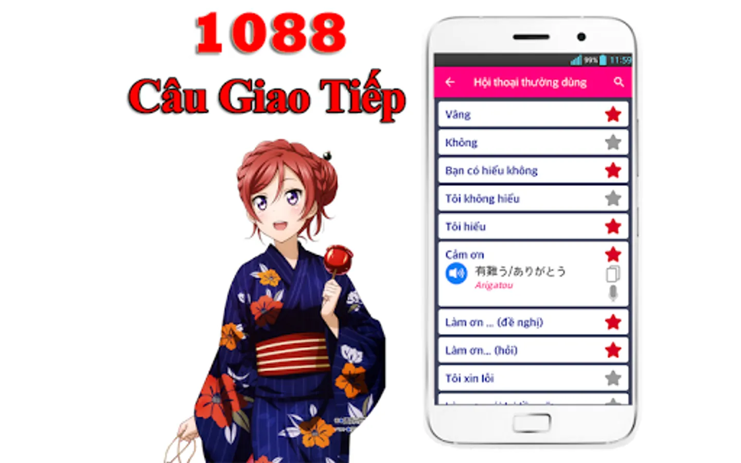 Learn Japanese Free Offline has 1088 common phrase in japanese language free with sound and you can use all of them without network. Very useful for you learn and go to tralvel to the world. Learn japanese grammar is very easy!
