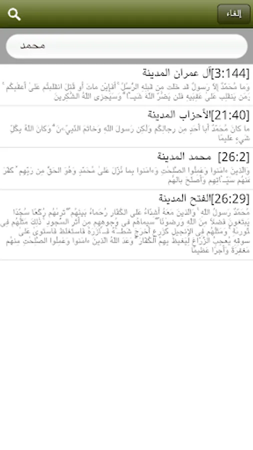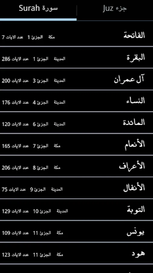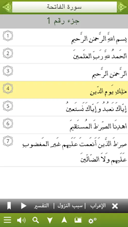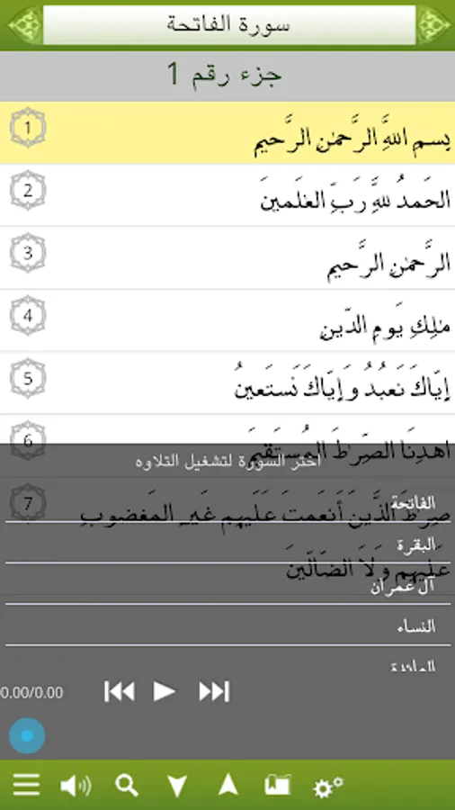 5- تصفّح النصّ القرآني من خلال فهرس السور والأجزاء.