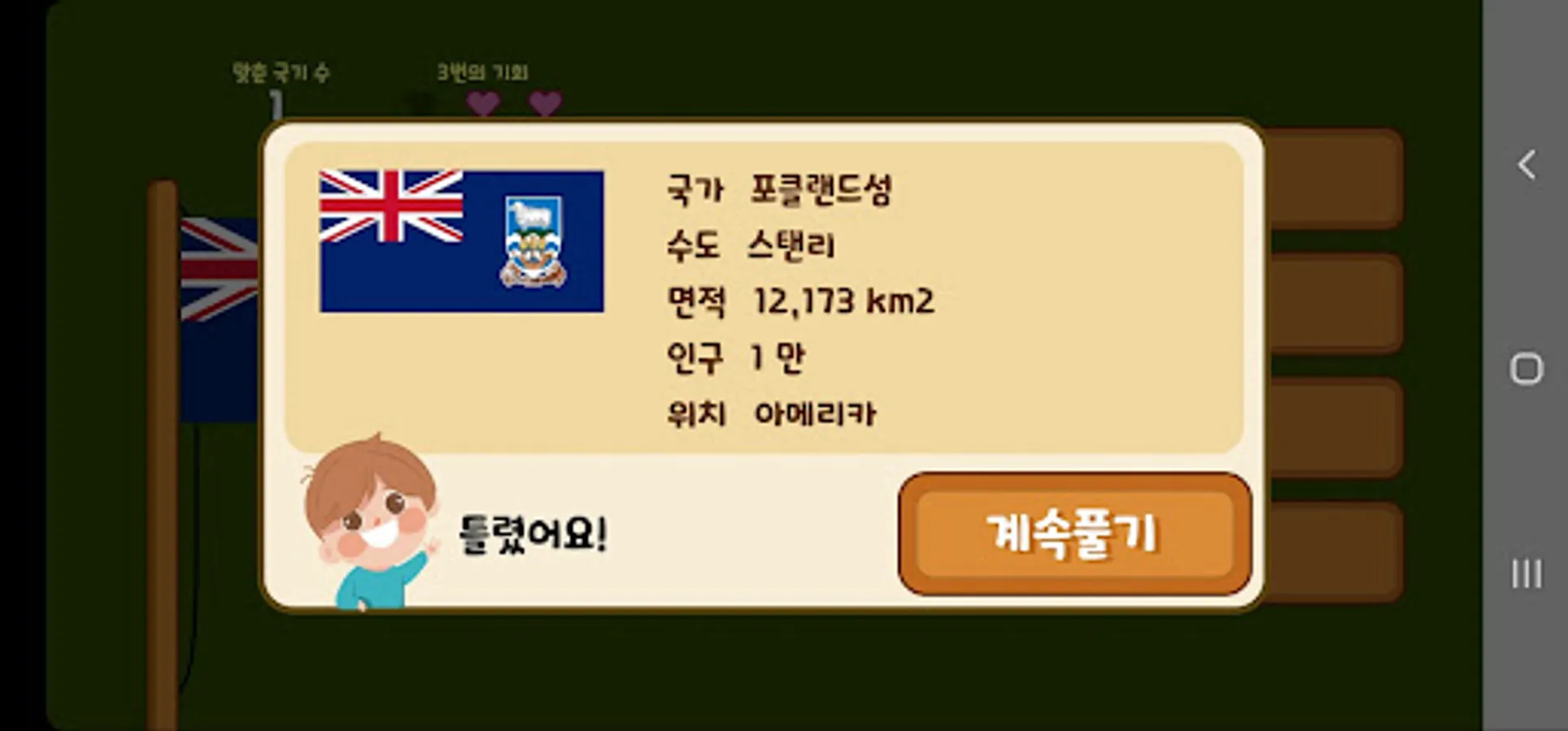 You can learn the capital, continent, area, population, and country name while playing the game.