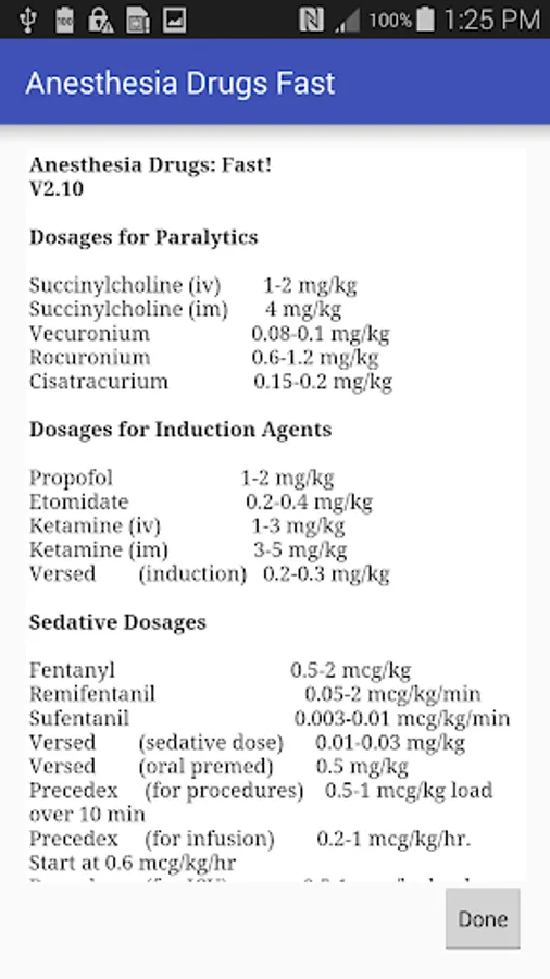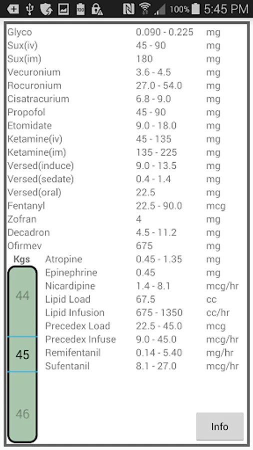 Anesthesia has so many drugs. Doing pediatrics anesthesia and you don't know the dosage? Using an unfamiliar medication? Just enter the patient's weight and get the dosage for the most common anesthesia medications on one page super fast! You get the dosage and the low and high range. Click info and you get the actual dosage used for the calculations.