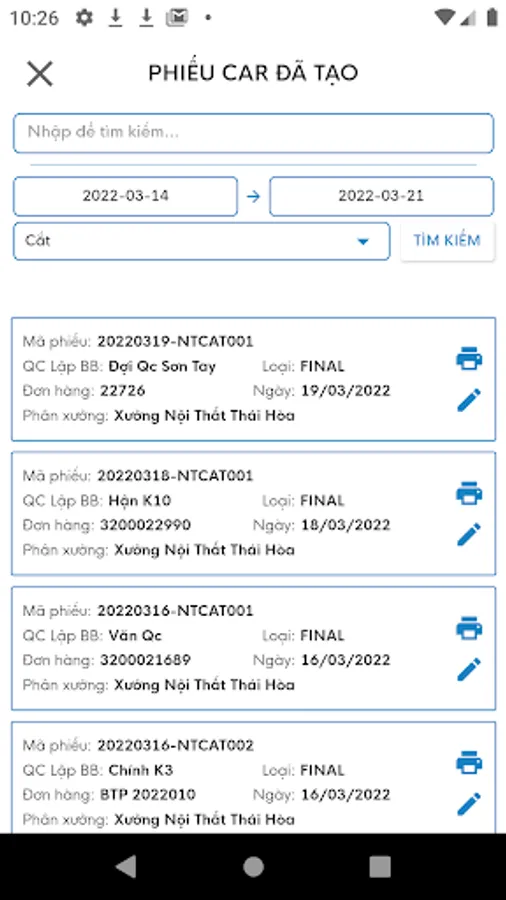 The application is used to track cases of errors in production of An Cuong company. At each stage of production, there is a quality checker (we call it QC). When in production, QC detects an error on the product and will use the application to create an error handling ticket (we call it a CAR ticket). The CAR card is pushed back to the system and analyzed by a higher level and given handling measures.