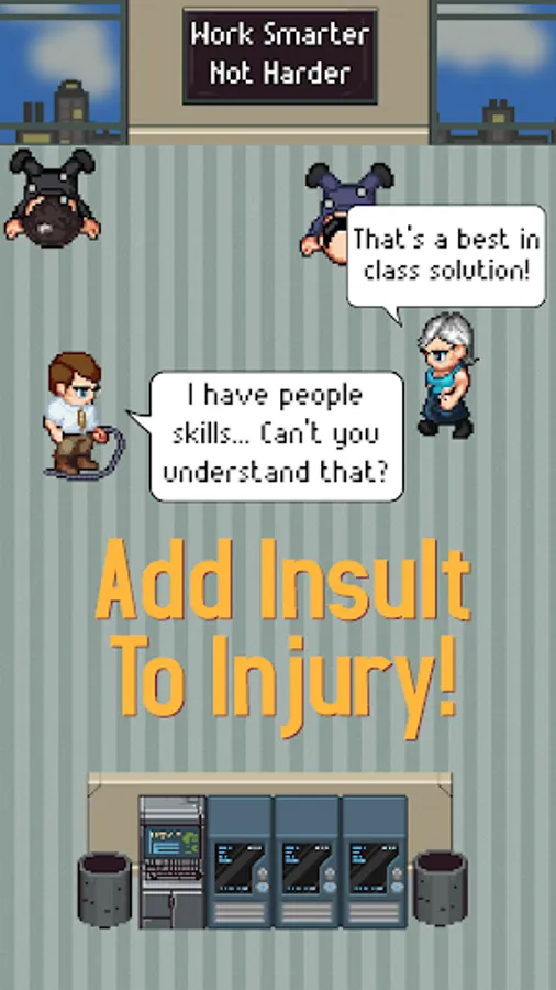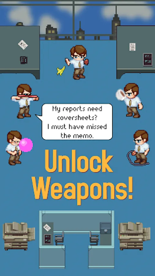 You control a fully customizable character as you make your way through the office, avoiding work from annoying colleagues and bosses by knocking them out with items you find.