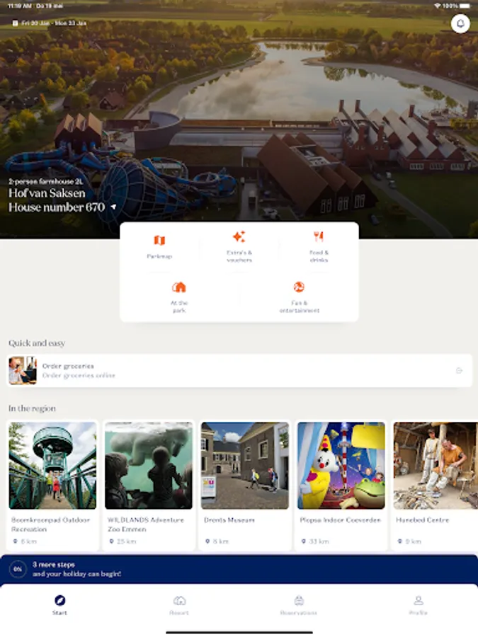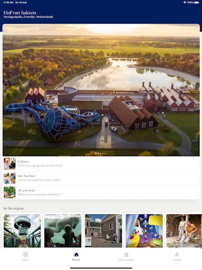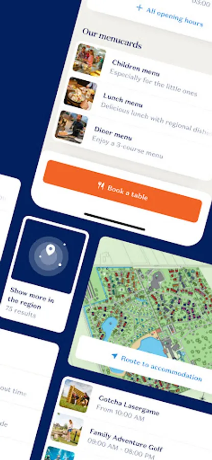 Our new start screen serves as the starting point for both the preparation for your stay and the actual stay. All important information about your resort, from all facilities to an overview of your accommodations, can be found here. It is impossible to get lost in the resort with our map. For all inquiries, please contact our park reception.