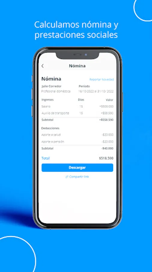 • Consult the monthly calculation of payroll and legal benefits according to the working hours of your domestic employee.