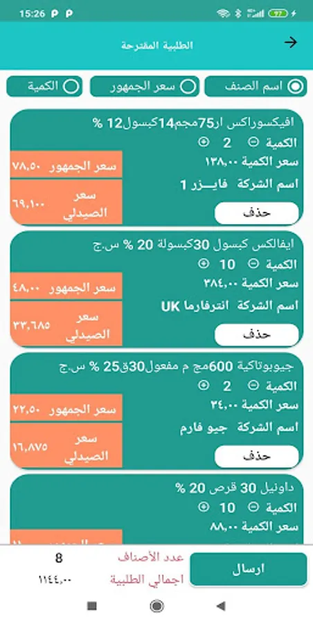 من خلال هذا التطبيق يمكن للصيادلة انشاء طلبية ومشاهدة اخر الاسعار والعروض والبحث عن الاصناف او البحث عن طريق الشركات