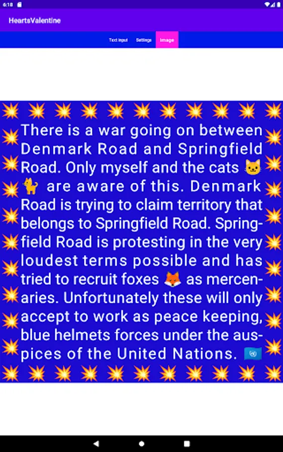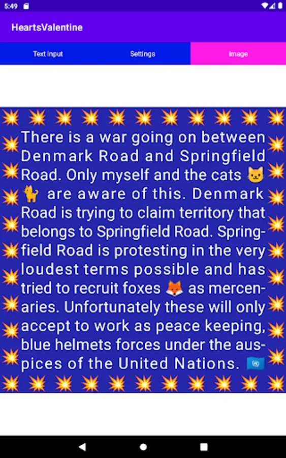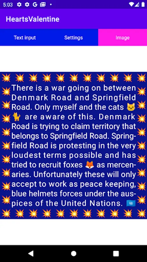 Other setting changes are possible: hearts, text and background color can be changed. Distance between text and hearts can be increased up to 50. An outer border is also possible.