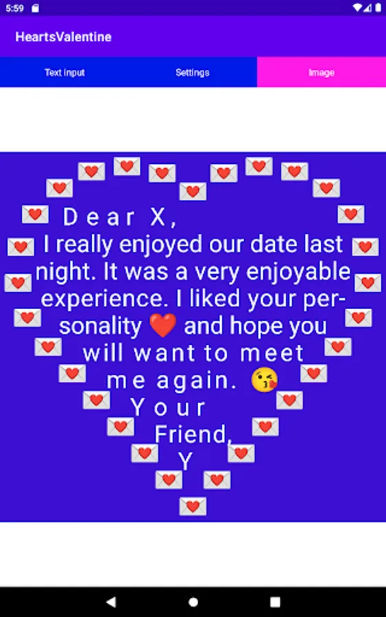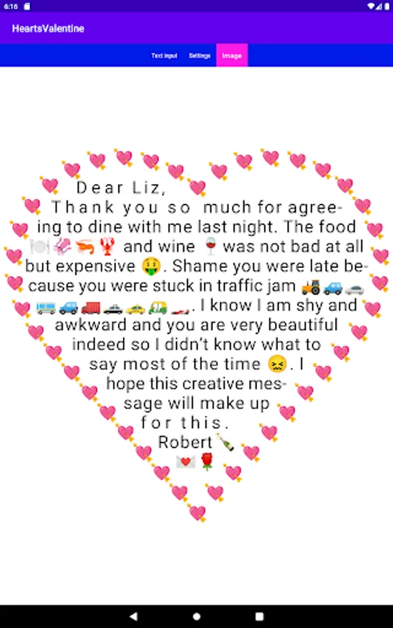 Images consists of text user entered inside a heart shaped frame made of small hearts.
