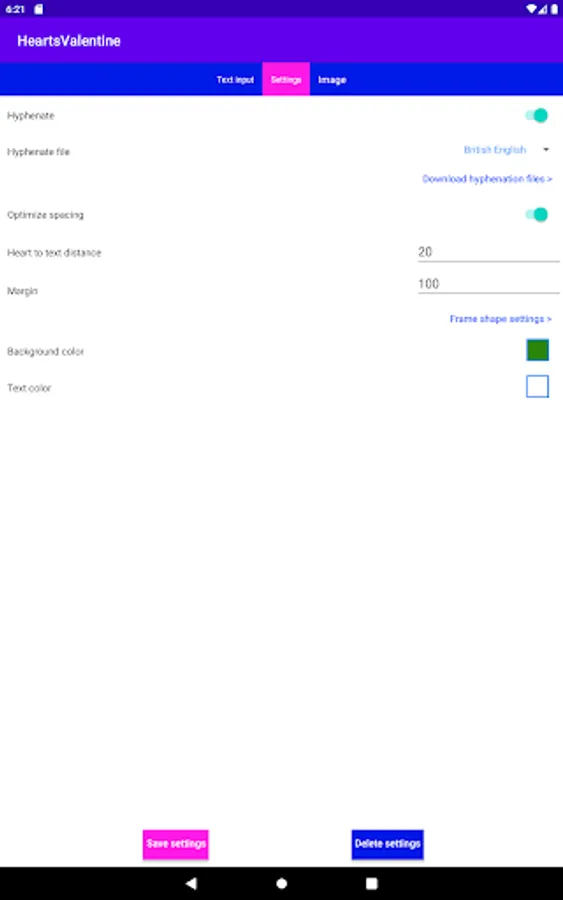 In order to get best layout and word breaking with hyphenation, user has to download a hyphenation file in correct language. This is inbuilt within this app and user only has to click on tab ‘Settings’ and then click on “Download hyphenation file”. This takes you to a list of 40 languages available. Just press “Download” on right of language and you are done. Several hyphenation files are possible and these appear in a drop down in settings tab. User just needs to select the correct language.