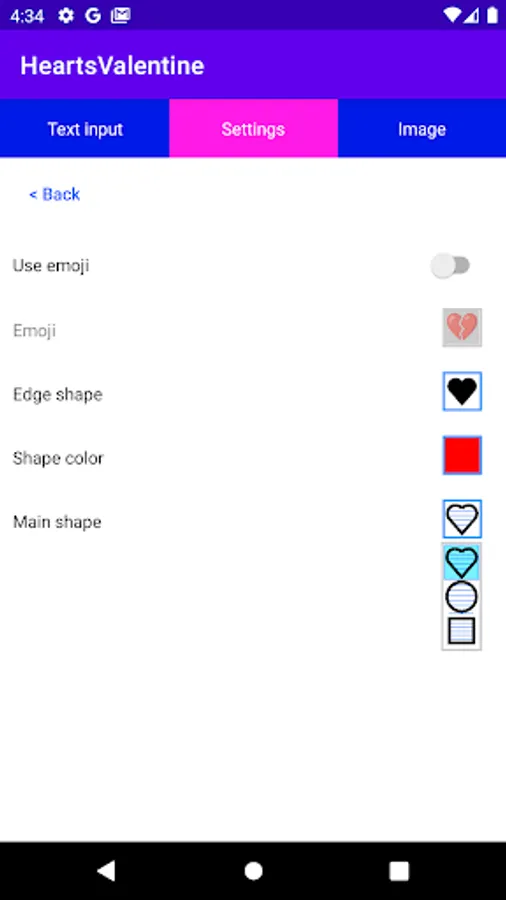 This app generates heart shaped images in gallery. These can then be attached to any social media: WhatsApp, Facebook, etc…