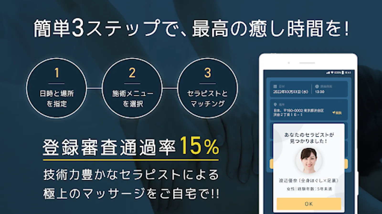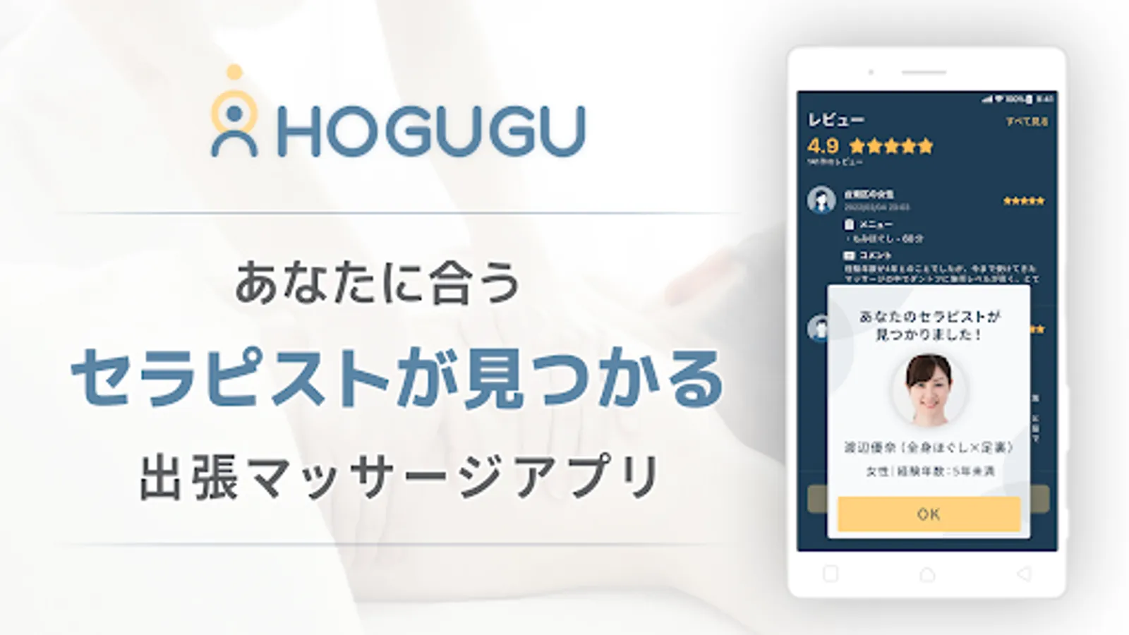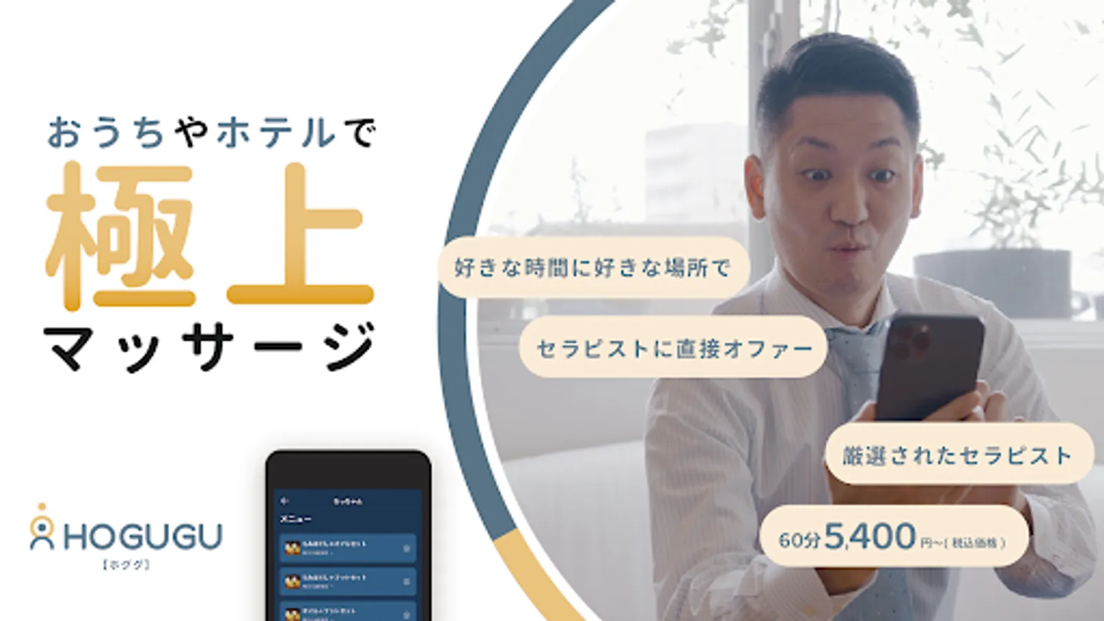 HOGUGU is a business trip relaxation app that allows you to easily call a therapist to your place.