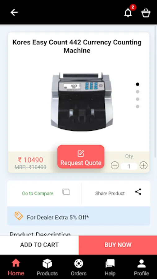 Kores dealers can buy products from this application. Various types of products available along with various methods of payments. Dealers can request quotations and accept or reject the quotations.