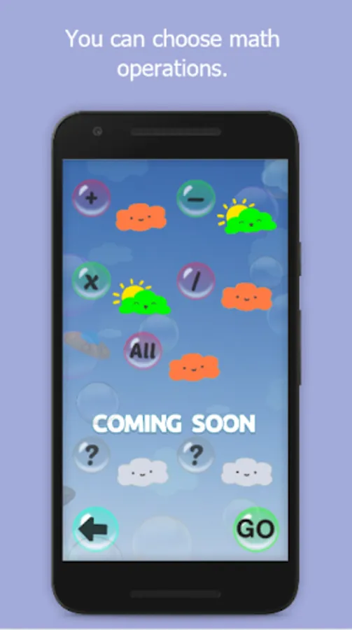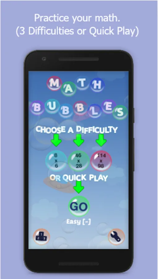You can choose your difficulty (Easy, Medium, Hard), choose which math operation/s you want to solve (addition, subtraction, multiplication, division). Play the game and be better at math.