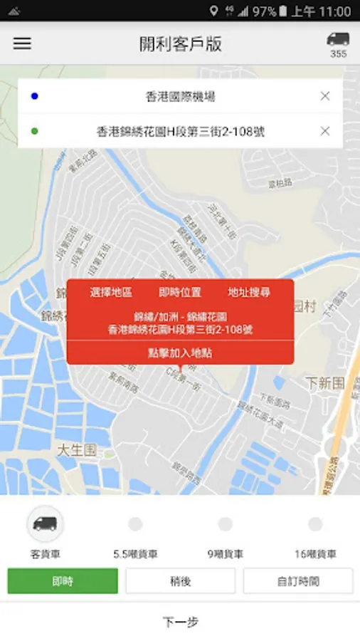 3.) 輸入姓名及電話號碼出單,系統自動配對附近已報站司機。