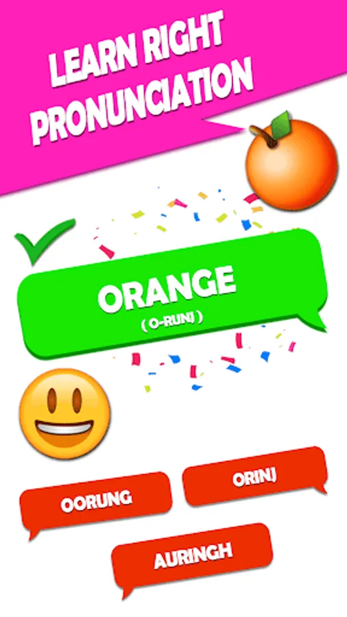 We have gamified this English speaking app in a way where you will feel like you are playing a game and subconsciously, you will be learning. That’s what makes it very receptive and effective as well. The colorful gameplay, stickers and rewards will keep you motivated while learning new English words. There is a feature of Hint as well in the game which helps you listen & learn correct English pronunciation.