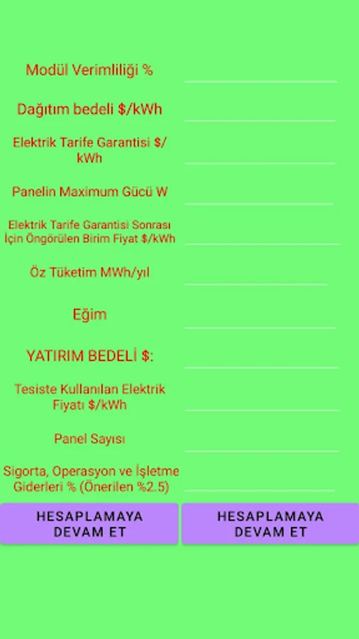 In this application, all electricity production and economic outputs during the first year and total operation can be obtained after entering the necessary information for the design of a solar power plant, such as the selection of solar energy panels, sun exposure time, city selection, ad-free and free of charge. Results such as time, money earned and main performance indicator are analyzed. Solar power plants have an important place for the electrical engineering and energy sector and this application is there to help you in this regard, free of charge and without advertising.