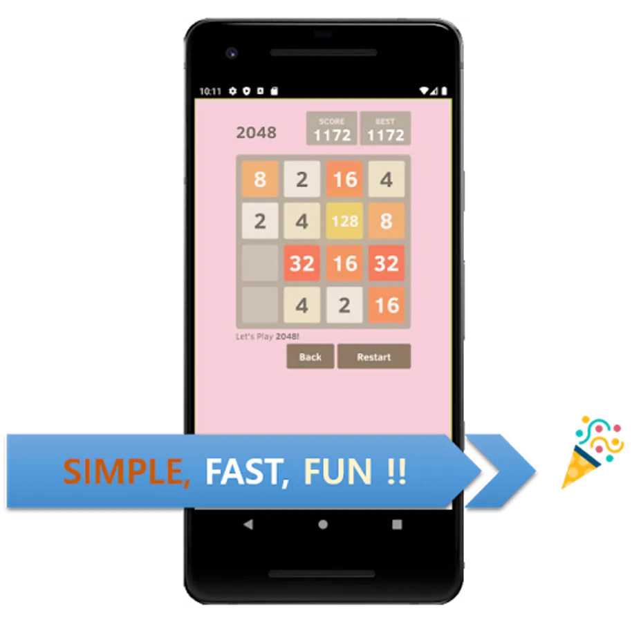 Example: 2 + 2 = 4 ... 4 + 4 = 8 ... Make 2048 tiles to win !!!