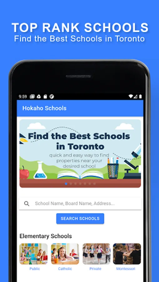 EASY TO USE - Hokaho School is the EASIEST App for people to find a HOME within close proximity to their desired SCHOOL; focusing in the Toronto and its surrounding area.
