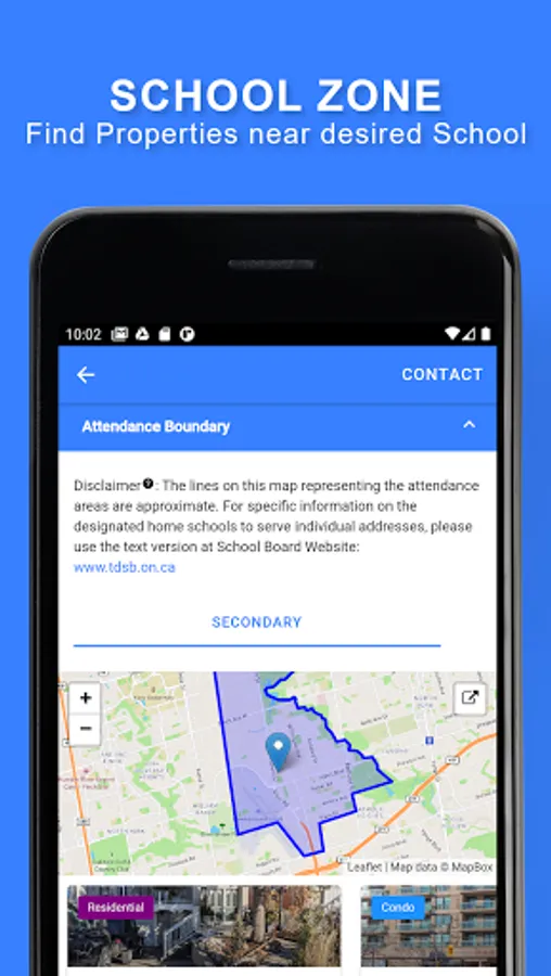 Simply “Click” into your desired School in our app and immediately see properties currently FOR SALE.