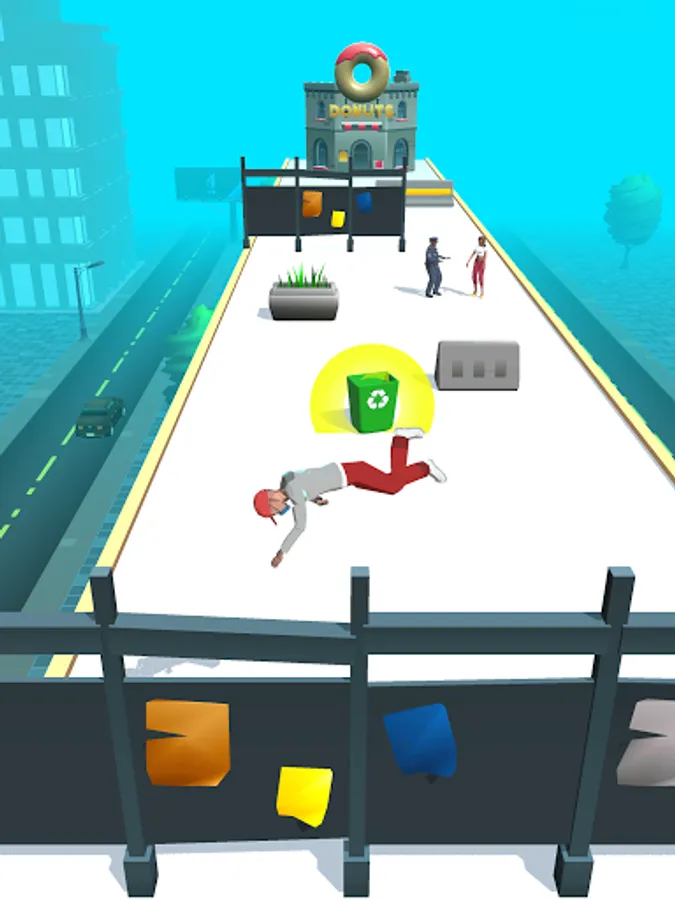 Prank people and then run of them using obstacles on your way!