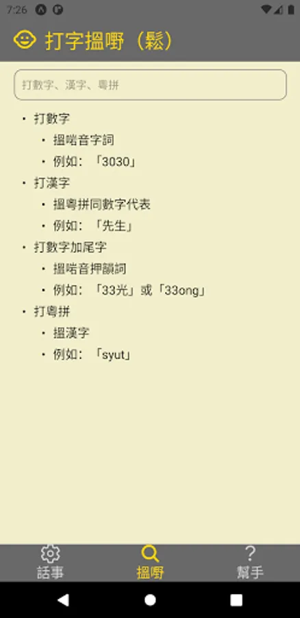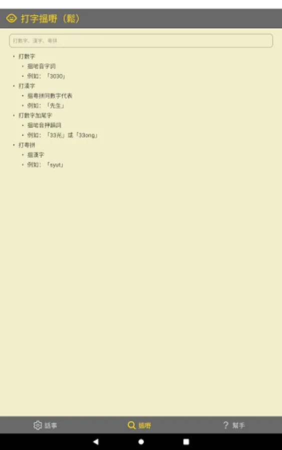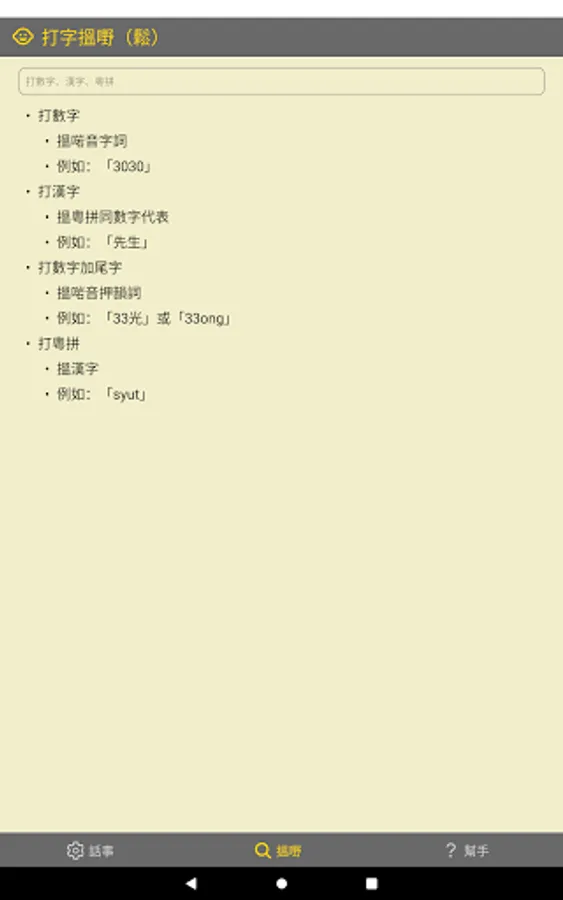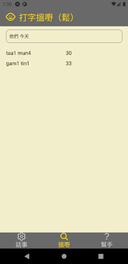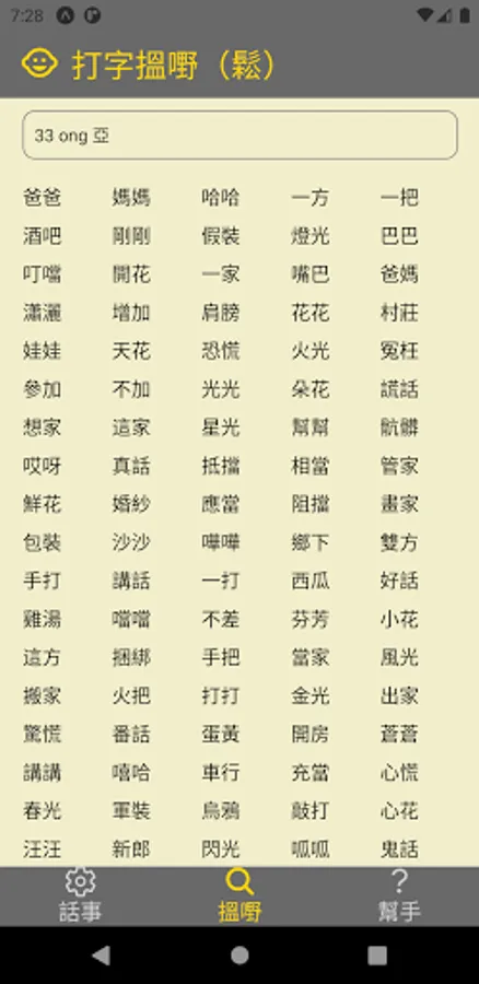 3. Want to use the same tone as "Ding Dong", but also rhyme with "Dang"? Please hit "33 Dang" or "33ong". You can use several rhyming words at the same time. You can play Yuepin (vowel or whole tone). Type numbers and end words, and use rhyming words.