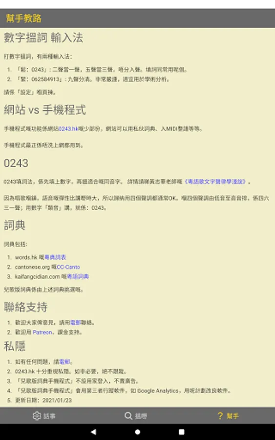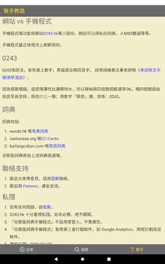 This is the mobile version of (Children's Songs) of the 0243.hk website. More than 20,000 words specify Cantonese tones, coupled with loose and tight, easy and fast search, and words that rhyme with the rhyme. There is nowhere to be found in the words.