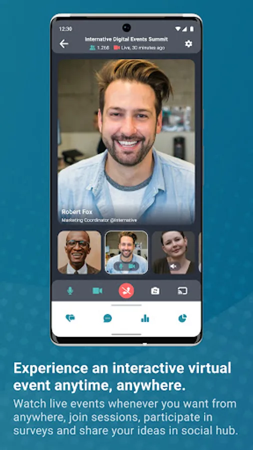 Watch live events whenever you want from anywhere, join sessions, participate polls and surveys and share your ideas in social hub.