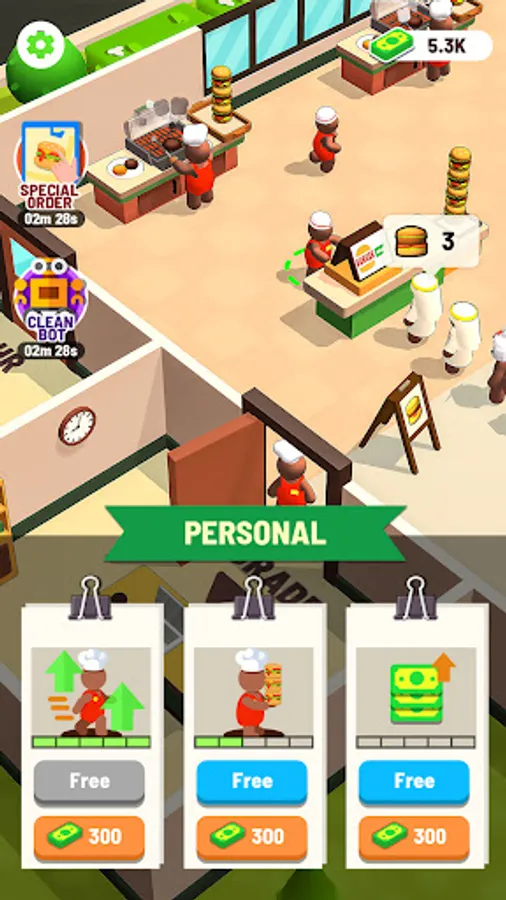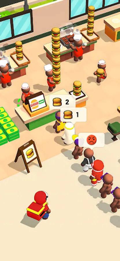 To become a burger tycoon, youβll need to hire and manage your own team staff. Train them by upgrading their abilities and watch as they contribute to the success of your hamburger kingdom. The more efficiently your staff works, the more customers you'll serve!