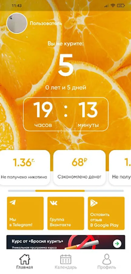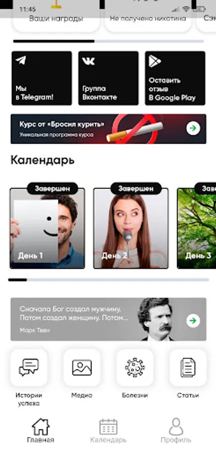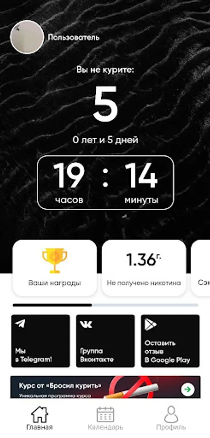 Quit Smoking app: counters, awards and achievements, quit smoking calendar. Useful information, motivating content without any advertising. Remember, everything is in your hands! The key to success is in your confidence and making the final decision, and in a difficult moment, do not despair, tell yourself: "It's good that I'm a non-smoker!".