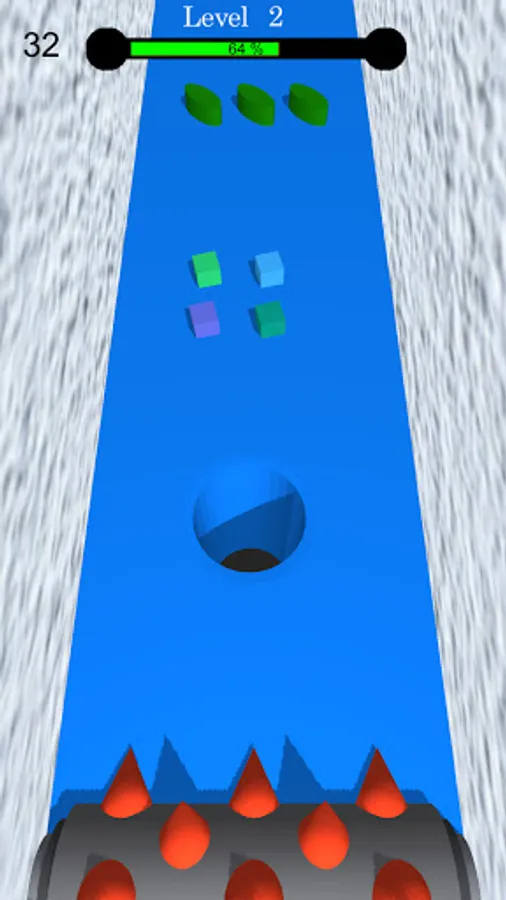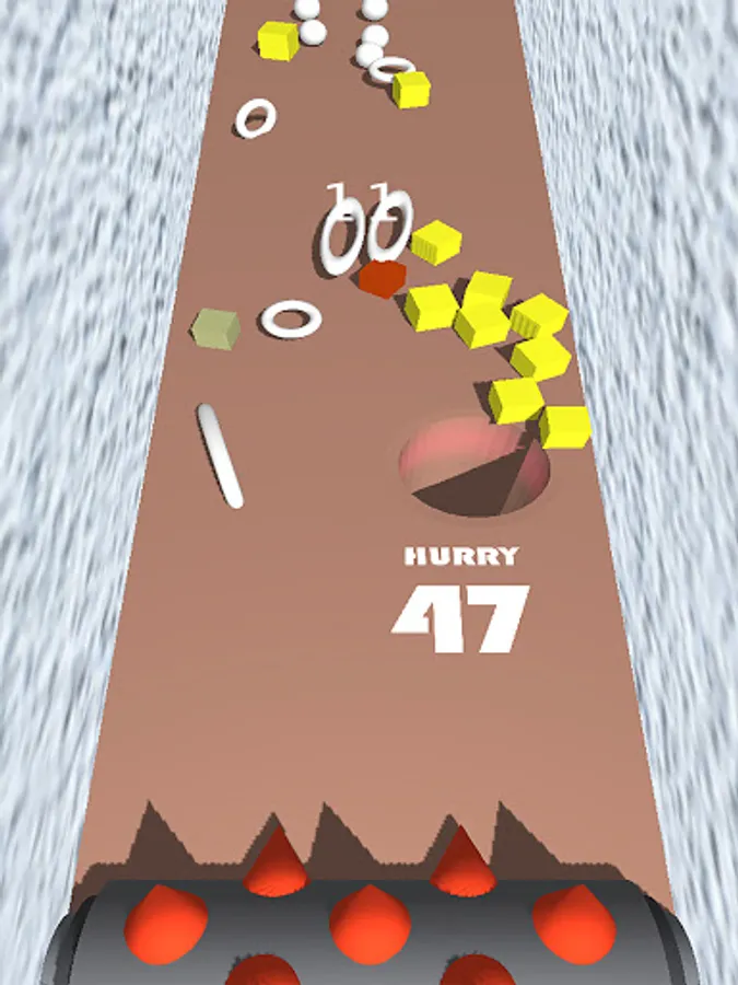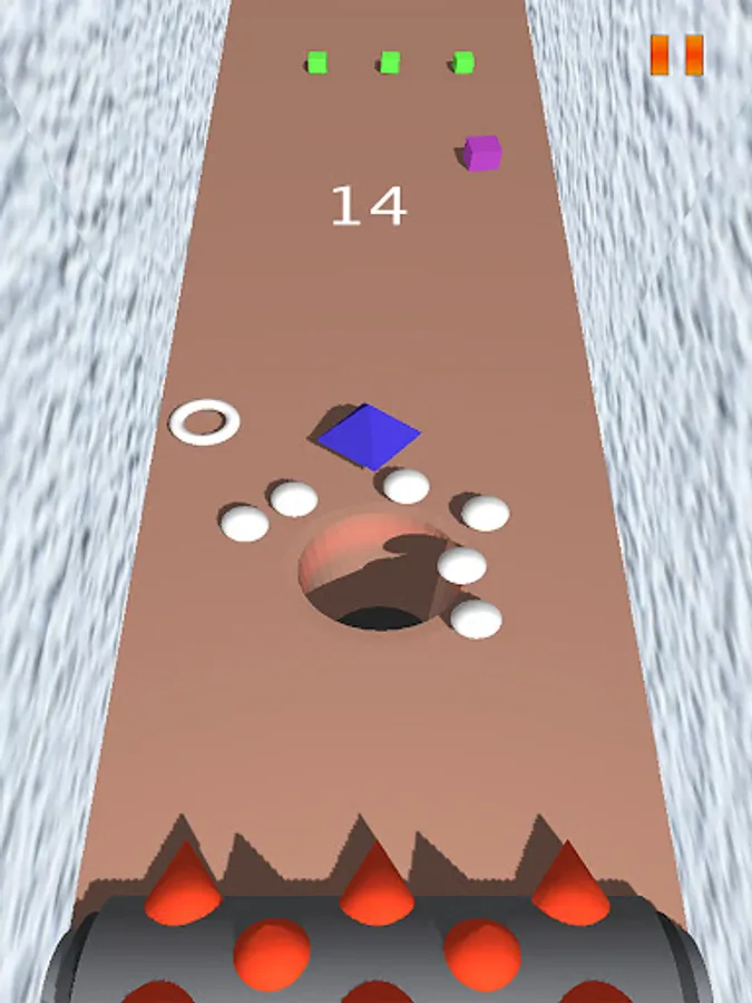 Game Objective: collect all objects that are coming on your way (spheres, balls, triangles, cubes, pyramids, etc.), because they will be destroyed by the deadly spikes. Suck all objects into the hole to escape the deadly spikes.