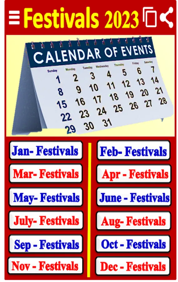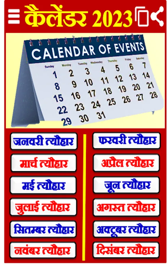 In this app, you will get a complete list of Holiday Festival Calendars in all Indian States along with Holiday Calendar List 2023 in Hindi and English Language. This app provides you with all the information about Vrat Tyohar Holidays and Festivals 2023. Here you can get all types of Calendar Festival to list 2023 Vrt Tyohaar Punching 2023. You can use this app online as well as offline also.
