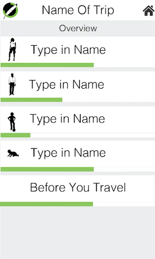 The list "Before the trip" reminds you of important To-Do's before your journey begins*: Who takes care of the flowers? Is the visa requested, the heating turned off, the answering machine prepared?