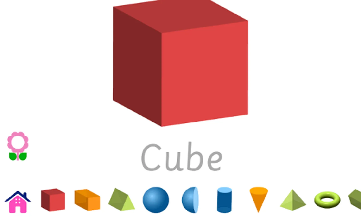 We have also provided advanced 2D and Advanced 3D shapes (Pentagon, Hexagon, Rhombus, Parallelogram, Prism, Pyramid, Torus etc) for 4 − 8 year kids.