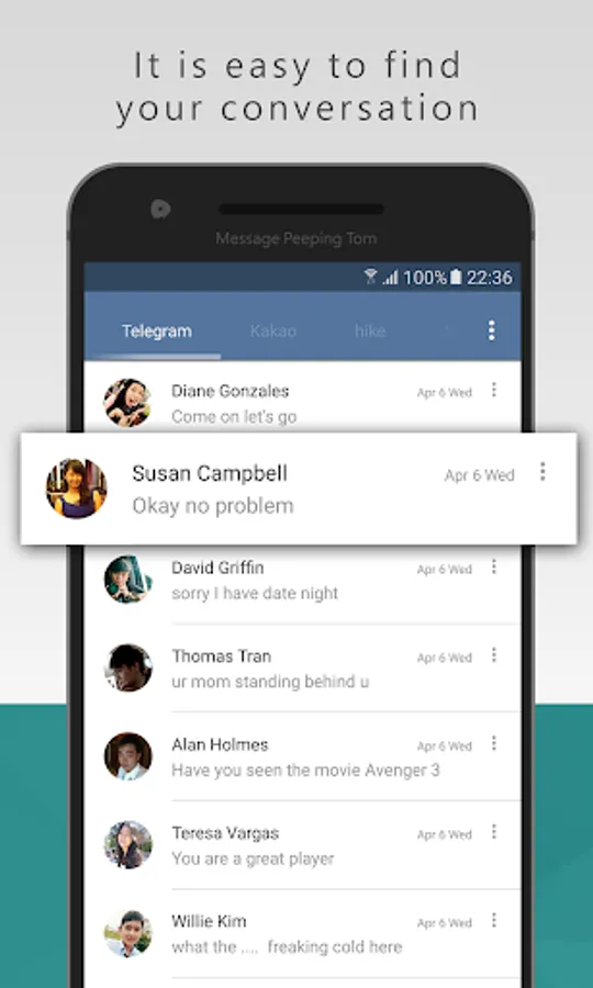 In order to use Message Peeping Tom, please ensure that your notifications are activated for the messaging apps you would like to connect.
