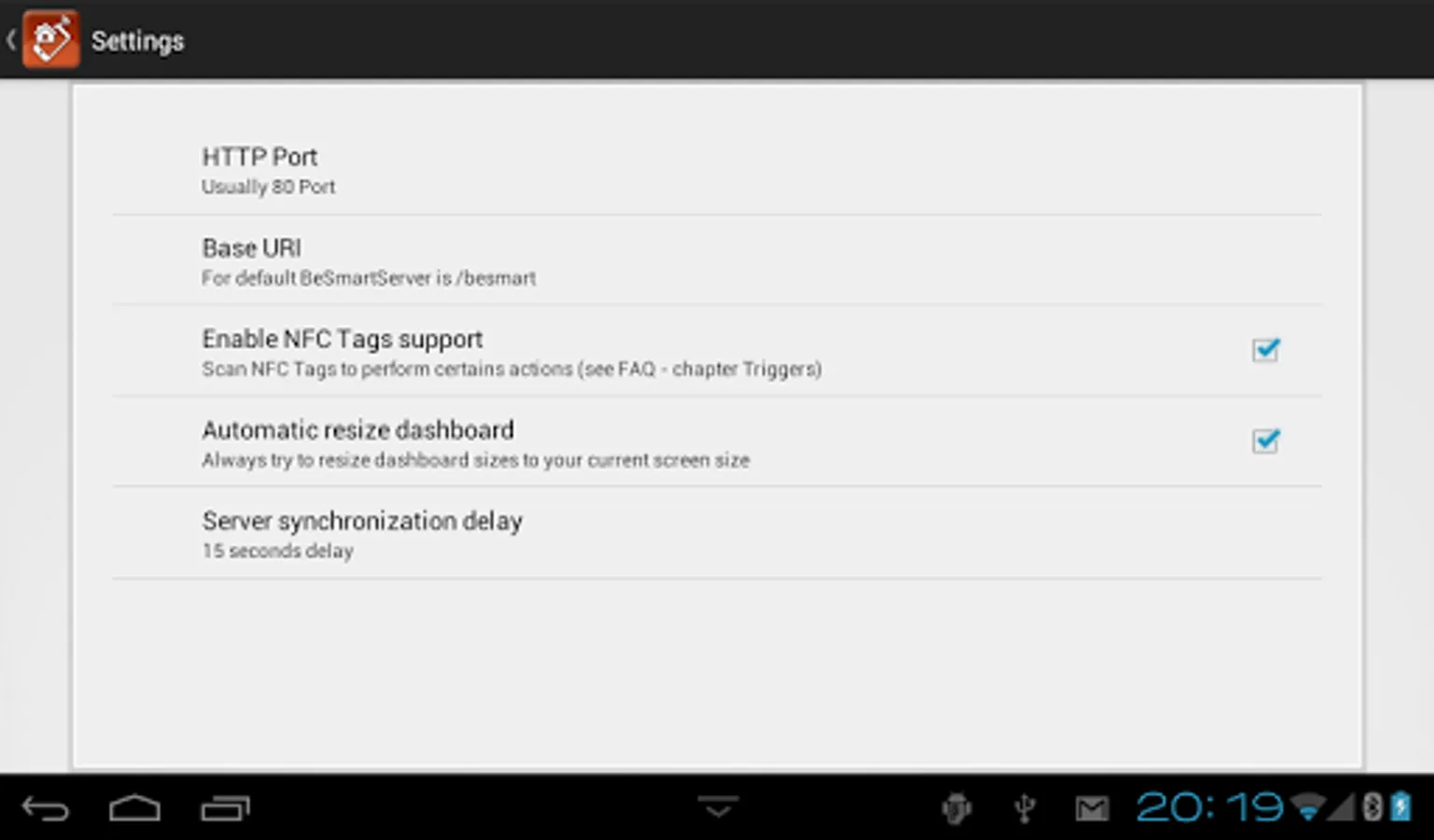 With this software and BeSmart server deployed in your LAN or WiFi network you can control lights, doors, IP Cameras, Central Heating, Domestic Hot Water System, Air-conditioning and many other.